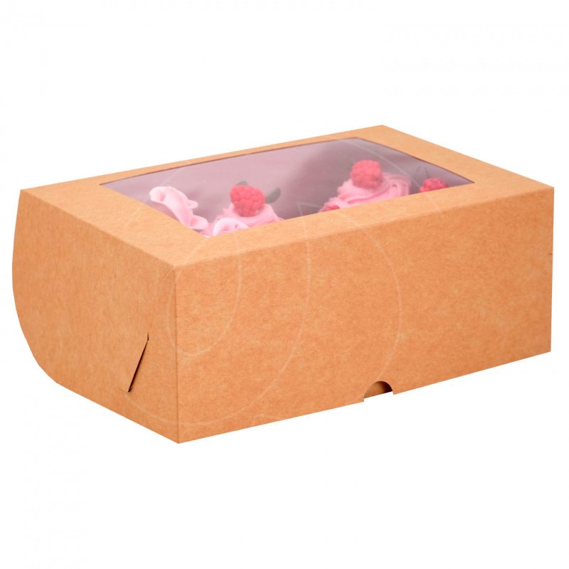 Доставка Коробка на 6 капкейков с окном крафт 25х17х10 см из магазина в вашем городе: